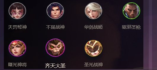 天罚弩神+虚空恐惧+虚空之女+不屈战神+齐天大圣+圣光战神+驭影双生+星龙战神+曙光神将