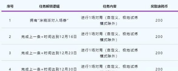 (1)在购买“涂鸦派对入场券”的玩家,能够开启每周任务, 通过每周可以最多获得涂鸦币×800。