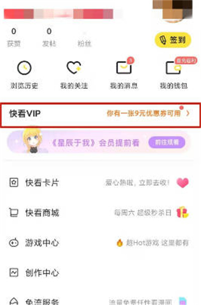 第一步,点击快看VIP