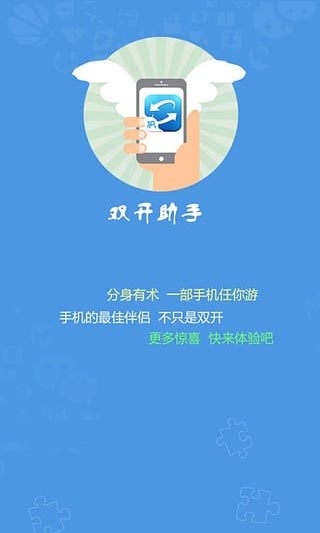 移动应用“双开助手”,目前已经支持所有的安卓手机,能够完美支持微信双开和游戏多账号同时运行。“双开助手”是一款通用的双开工具,能够支持几乎所有的手机上常用软件的双开,包括微信、QQ、陌陌、Facebook、Whatsapp、手机游戏。双开助手采用独立于手机运行系统的虚拟系统,双开的应用是在独立环境里运行,安全性和功能不会受到任何影响,能够接收App的通知消息。在使用过程中,也不会出现卡顿等情况。作为作为全球首款通用的双开工具,不需要root手机就能够支持Android手机上所有常用软件的双开,同时在双开软件中运行的微信账号正常操作下是不会封号的。
