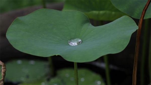 2、荷叶上有一层薄薄的空气膜,这样就可以让水滴在上面形成。