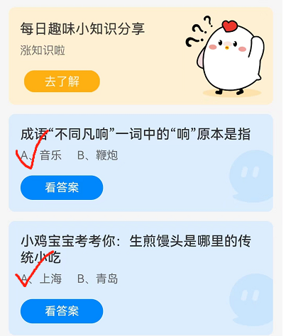 支付宝每天都有精彩小鸡问答向的特色内容,好玩趣味答题娱乐的精彩等你解锁,尝试更多趣味问答的特色操作娱乐,大家每天通过答题还可获取到饲料相关的精彩,7月18日的问题为“成语“不同凡响”一词中的“响”原本是指”,“小鸡宝宝考考你: 生煎馒头是哪里的传统小吃”,下面为大家带来7月18日相关问答解析分享!