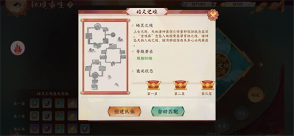 每个境界的探险模式一共都有三层,每次通过一层便可获得该层所提供相关奖励,在进入秘境之前,咱们可以选择自动匹配别人的队伍或者自己创建队伍进入,而如果想要自己独自闯关则需要自行进行队伍创建,并且在无人入队的情况下直接开始秘境就可以了。