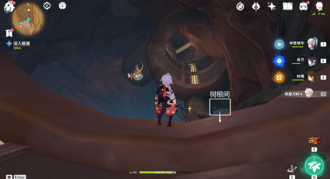 10、往地图的西南方向看,按图中指引,往树根间下飞。