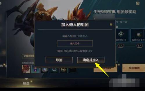 3、最后在输入框中输入以上分享的组团口令,点击确定并加入即可。