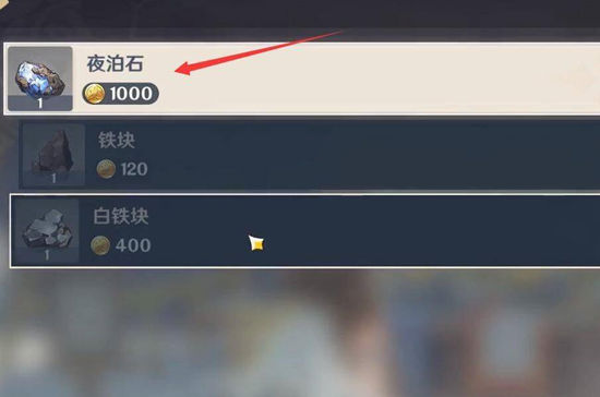 5、打开商店页面,找到夜泊石即可购买,每天最多可以买5个。