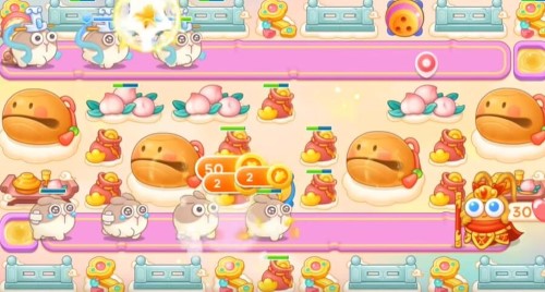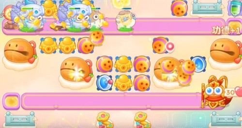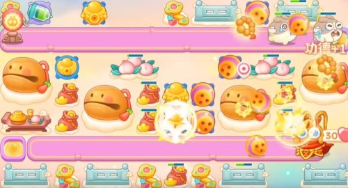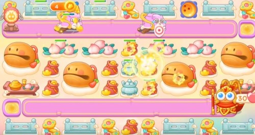 2、建立元宝打钱袋,保龄球打桃子可以打到下面的兔子。