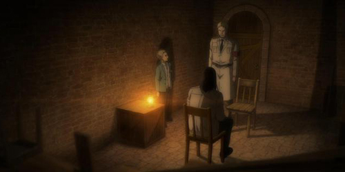 身为艾尔迪亚人的艾伦潜伏到马莱国,在对马莱开战之前和莱纳(曾经的战友,现在的敌人)进行了一次秘密会面,从而出现了这样的名场面。