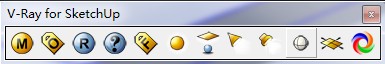 1、vray 工具栏首先介绍一下工具栏。下图便是vray for sketchup的工具栏,如果打开sketchup的时候没有该工具栏,请勾选sketchup菜单栏的“视图”→“工具栏”→“vray for sketchup”。