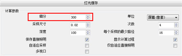 b、高参数:具体视场景而定,紧接下来会有设定方法,一般来说只需改变图像输出、图像采样器、发光贴图和灯光缓存的参数。