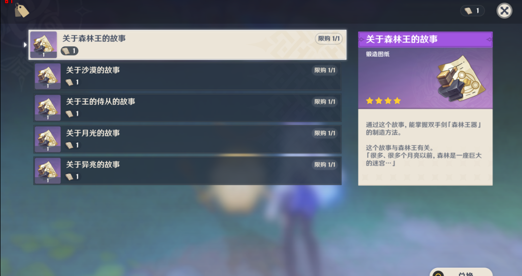 2、梦之树旁边和兰随尼对话,使用关于你与兰那罗的故事可以购买锻造武器图纸。