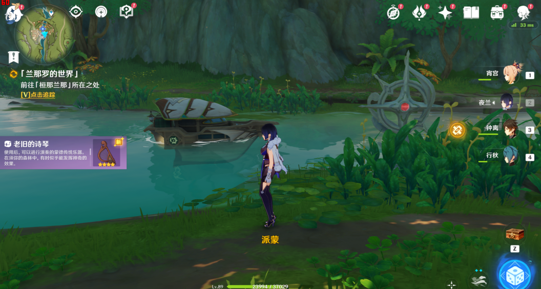 3、到达指定地点之后,弹奏大梦的曲调,需要装备道具老旧的诗琴,按照提示弹奏。