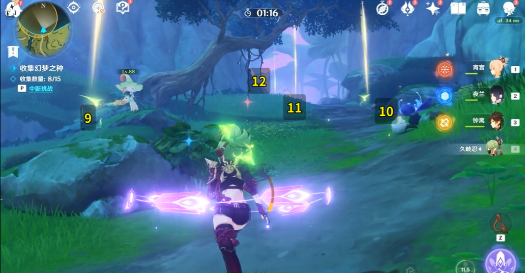 (1)挑战当中,需要在规定时间之内收集所有幻梦之种,并且回到幻梦之门,如果不小心受到敌人攻击,挑战时间缩短。