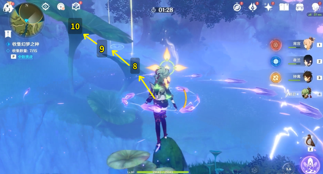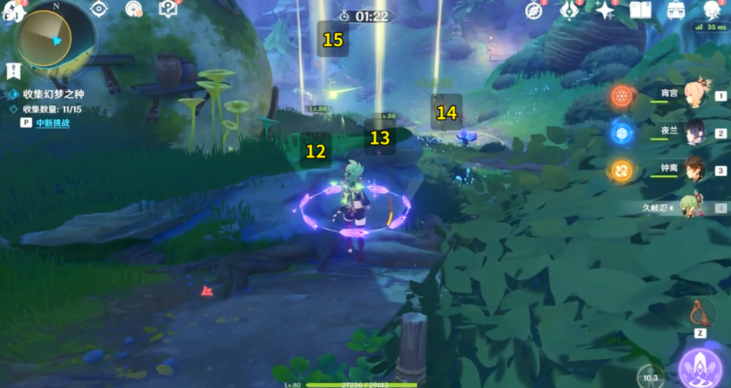 (2)用雷元素活化梦之花可以标记剩下幻梦之种位置。