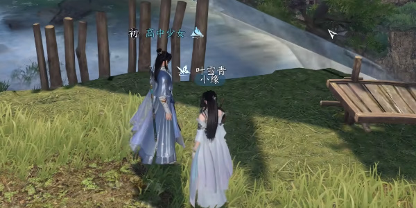 2、接着玩家需要来到瀑布下面找到叶雪青,与之对话并向她出示止血散;