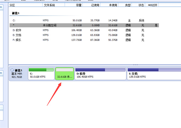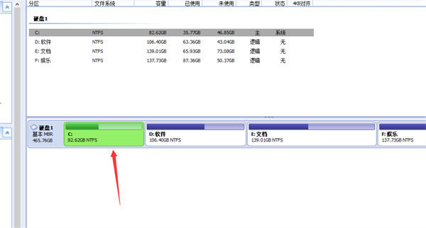 7、拖拽图示按钮将未分配空间分配给C盘。