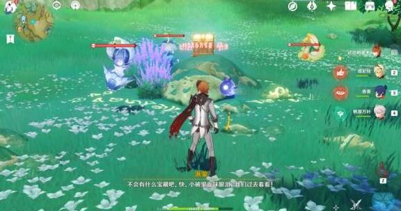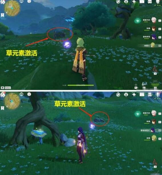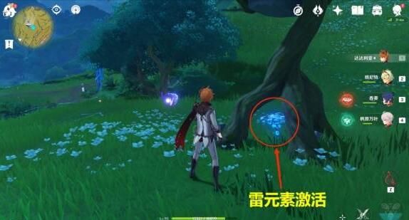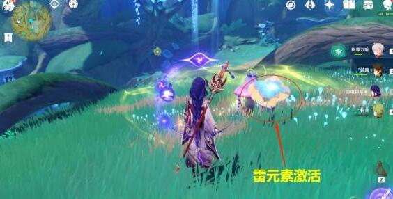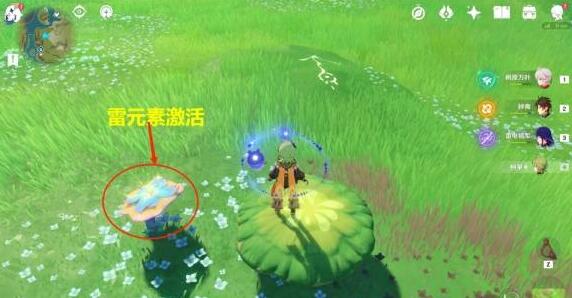 2、打败史莱姆后,利用雷元素激活机关蘑菇。