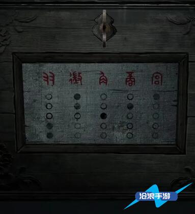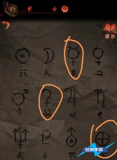 6、在房间里面打开罗盘,同样方式显示是:阴阴阳贪艮,去院子里孔明灯上面找对应符号,如下图,然后回房间里面在万花筒右边的盒子用符号打开盒子,获得胶水。