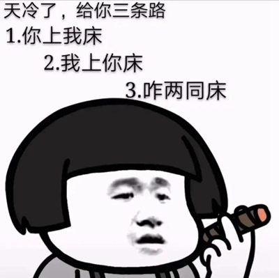 天冷了给你三条路 1.你上我床 2.我上你床3.咱两同床