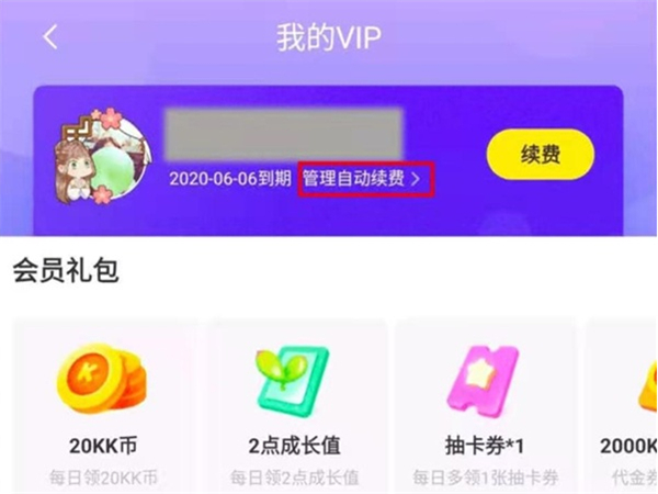2、接着我们在我的VIP中,点击如图所示的管理自动续费。