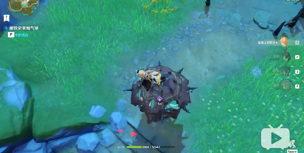 2、之后就站在气球上面,拿你伤害最大的角色,一边跳,一边砍,注意不要掉下去了。