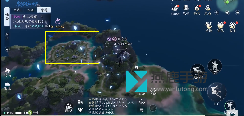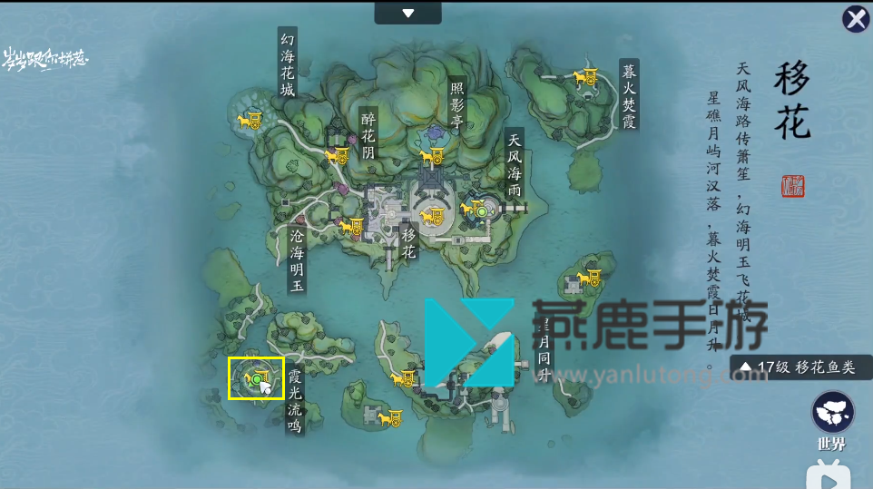 1、首先传送到移花地图,飞到这个岛上,下图框内这块小岛就是秘藏位置;