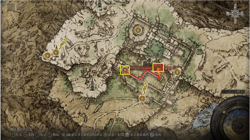 3、根据上图标记出来的路线就可以获得夜与火之剑。