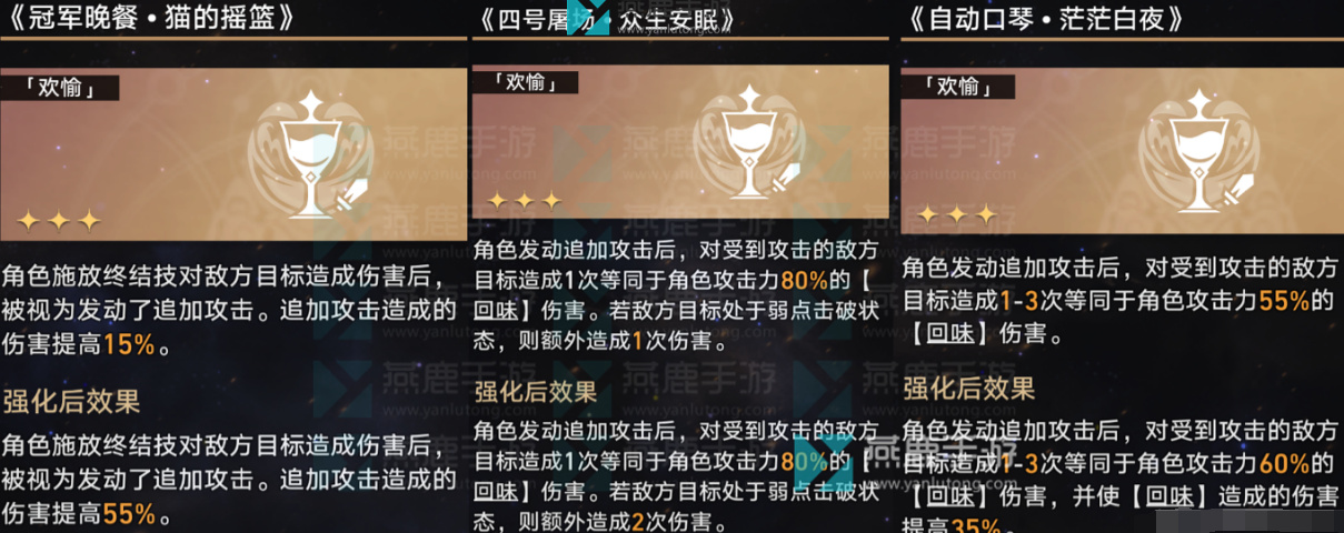 8、一星。巡猎-加双暴、击破弱点。毁灭-回能、效果抵抗、免疫死亡。丰饶-治疗加成和回战技点都是很合适。
