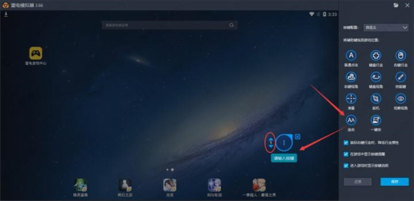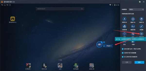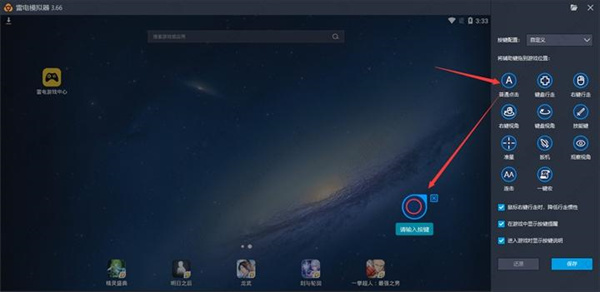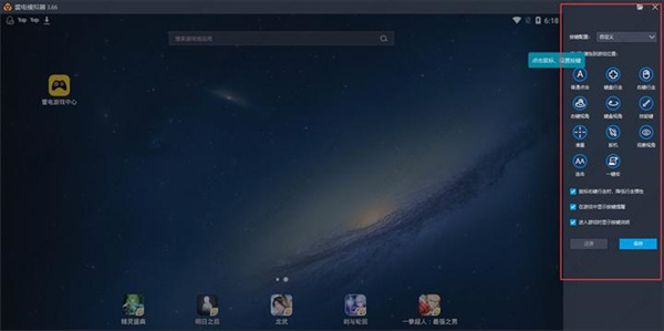 2、游戏成功启动后,点击模拟器右侧工具栏按键按钮(键盘样子)进入按键设置界面;按F12可以查看雷电官方设置的默认按键。