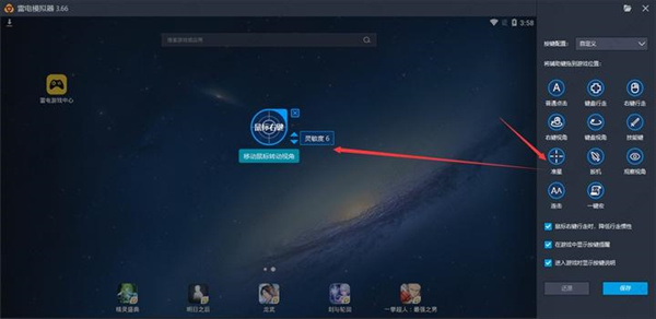 ①右键视角:拖动右键视角到屏幕,点击保存,设置好之后右键激活,可以用鼠标来控制视角转动。