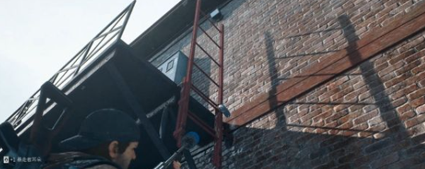 2、我们到达地点之后需要先将这里的怪物消灭掉,然后来到下图中的地方用枪打上面的锁让楼梯放下来。