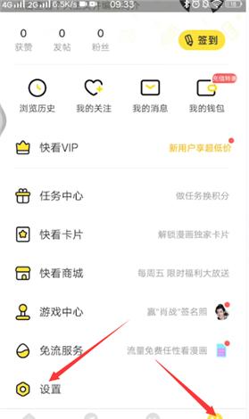 打开快看漫画,点击我的,往下滑,在最下面找到设置,点击设置,
