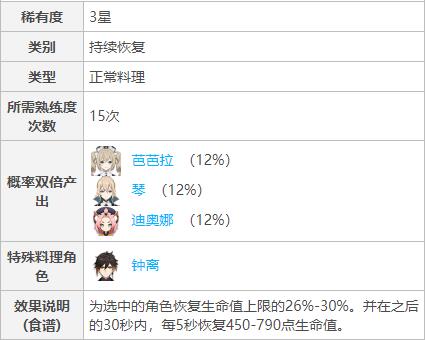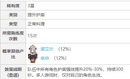 火腿+禽肉+竹笋+蘑菇(队伍所有角色护盾强效提高20-30%)