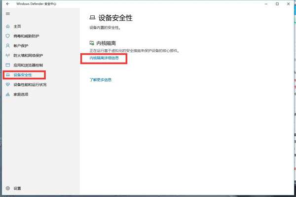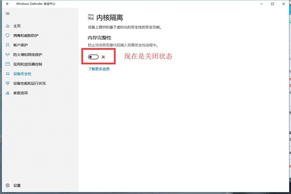 桌面点击左下角“开始菜单”,搜索“windows”找到“Windows Defender 安全中心”点击,进去之后再按照图片的顺序标识关闭“内核隔离”