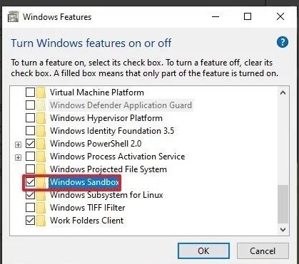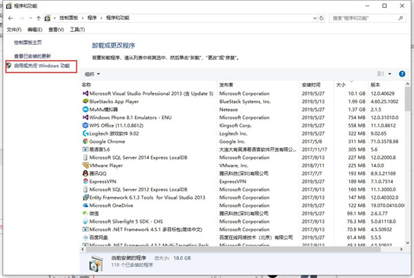 打开控制面板,选择程序,点击“启动或关闭Windows功能”的选项,找到Windows sandbox。