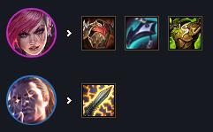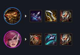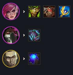 无尽和轻语是必备装,德莱文的攻击是从前排开始的,需要有足够强的切肉能力。第三件选择空间更大,容错可以选水银或者正义,要伤害可以选巨杀、飓风、杀人剑等等。主T选蔚主要是发挥蔚的技能破甲,让德莱文切肉更快。副C选蛮王,做任意AD装备捡垃圾即可。