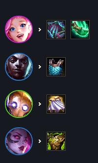 辛迪加自带续航,不需要吸血装备。做完寒冰装备,优先做前排莫甘娜的防装,很重要!