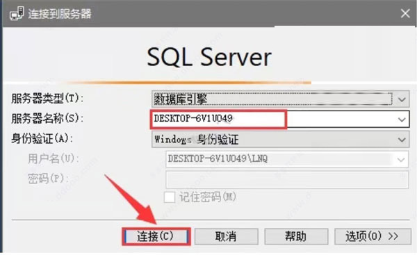 22、在下图所示的界面中,服务器名称会自动选择,如果没有就展开下拉框选择然后直接单击【连接】