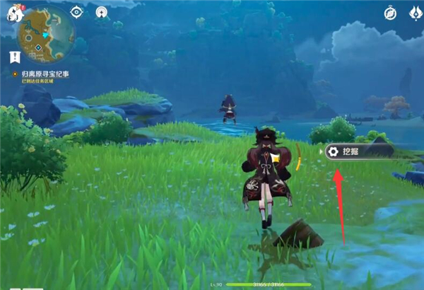 4、然后我们就能在台阶上看到宝藏,直接挖掘。