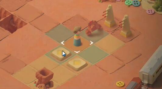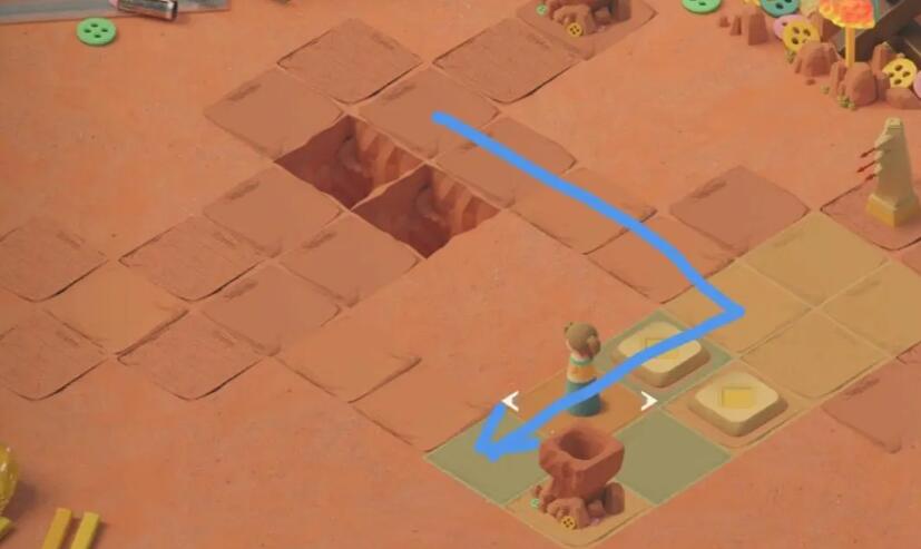 2、向右走将石像勾引至碎裂的地板上使其坠落。