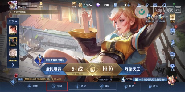1、首先先进入游戏大厅,之后点击进入下方的定制页面;