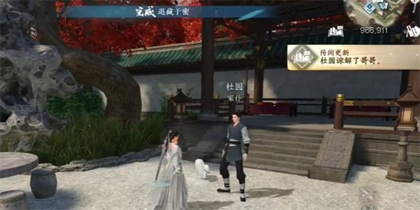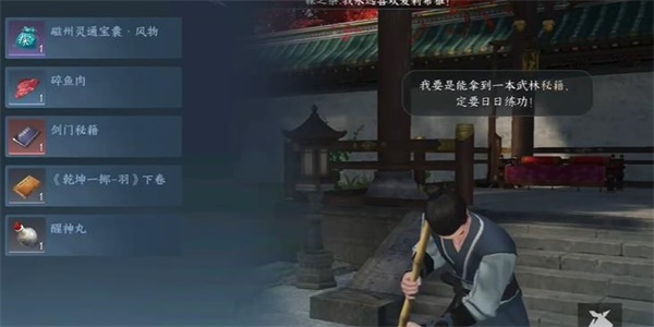 3、接着玩家需要找到师叔打听秘籍是谁的,之后还要询问杜圆和他的哥哥;