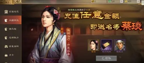 这套阵容中比较重要的武将是蔡琰(蔡文姬),她作为治疗型的智力武将在阵容中可以帮助我们完美解决开荒时部队统率低缺少治疗的问题。而且蔡文姬是范围性的治疗武将,可以为无名武将提供治疗。
