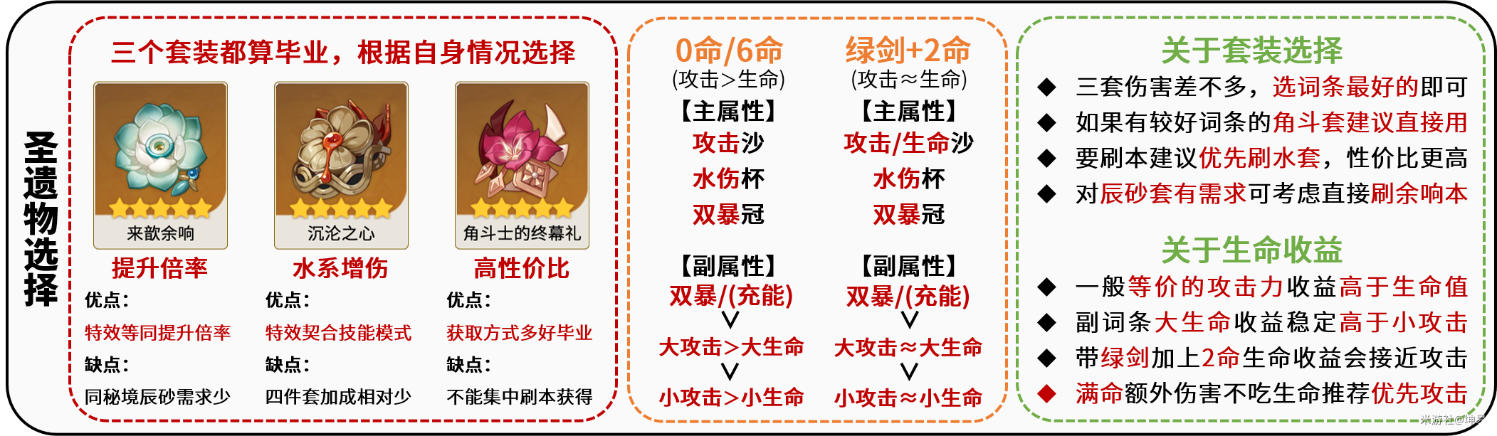 圣遗物可选4余响,4追忆,4角斗。