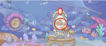 2、然后将章鱼放到镜子前面就可以获得它的脸,然后镜子上面有个海星可以获取。