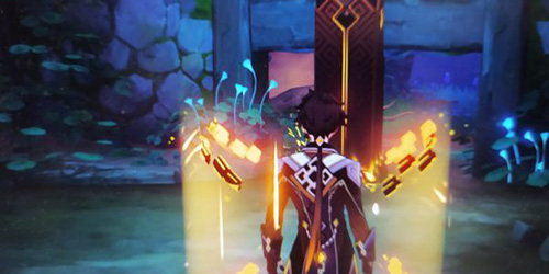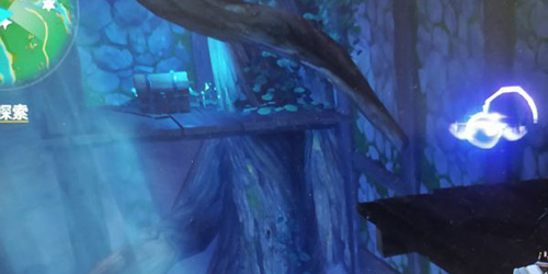10.旁边有个雷巨石,可用大剑,岩系技能击破,进去后,左上角有宝箱如图,跟随雷仙灵,解锁一个普通宝箱