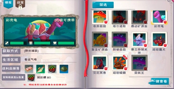 1、彩壳龟需要80个斑彩螺才能捕获,等级要求是35级。