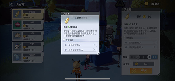 沙拉酱是一种特殊的食材,可以在食材商人处可以购买。