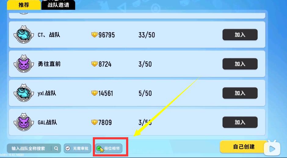 2、然后系统会向你推荐可以加入的战队,你也可以自己在下方搜索想要加的战队;