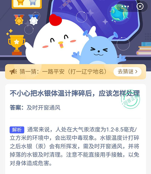 如果在生活中不小心把体温计中的水银摔碎之后,应该需要怎么样来处理呢?今天的支付宝小鸡答题就问到大家这个问题,都知道水银是有毒,到底怎样处理才是正确的呢?赶紧和小编一起来看看正确答案吧。